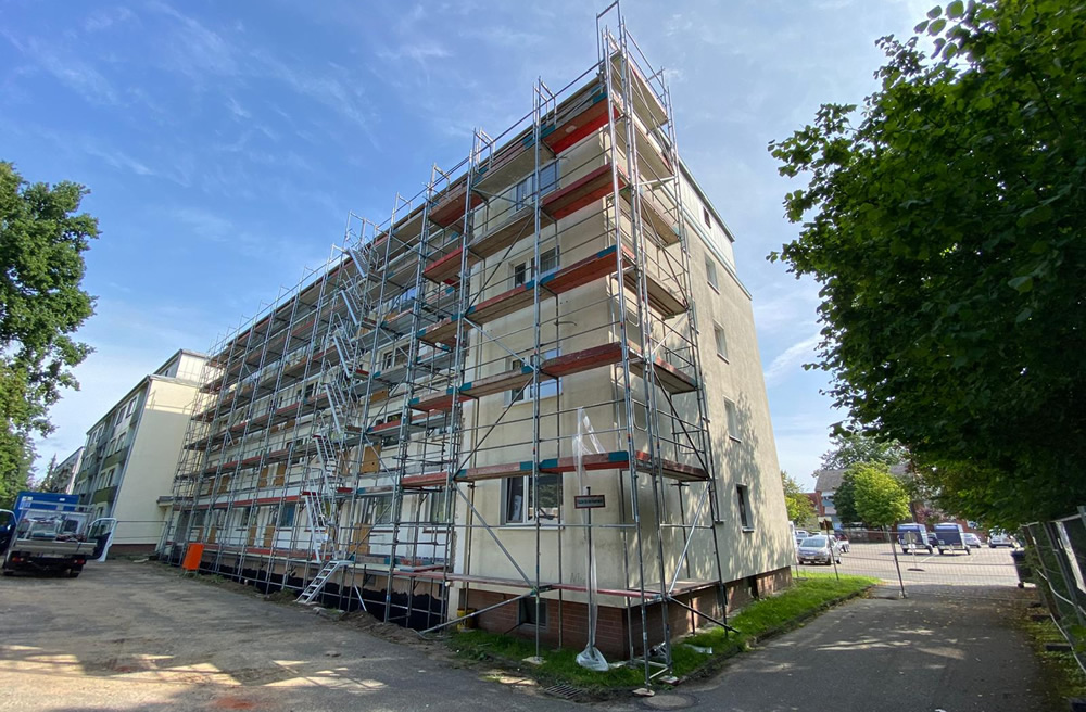 Vom Einfamilienhaus bis zum Großgebäude: wir rüsten Ihre Fassade zuverlässig und professionell ein und schaffen so eine sichere Baustelle. Auf unseren Gerüsten können Arbeiten in der Höhe ohne Gefahr durchgeführt werden.